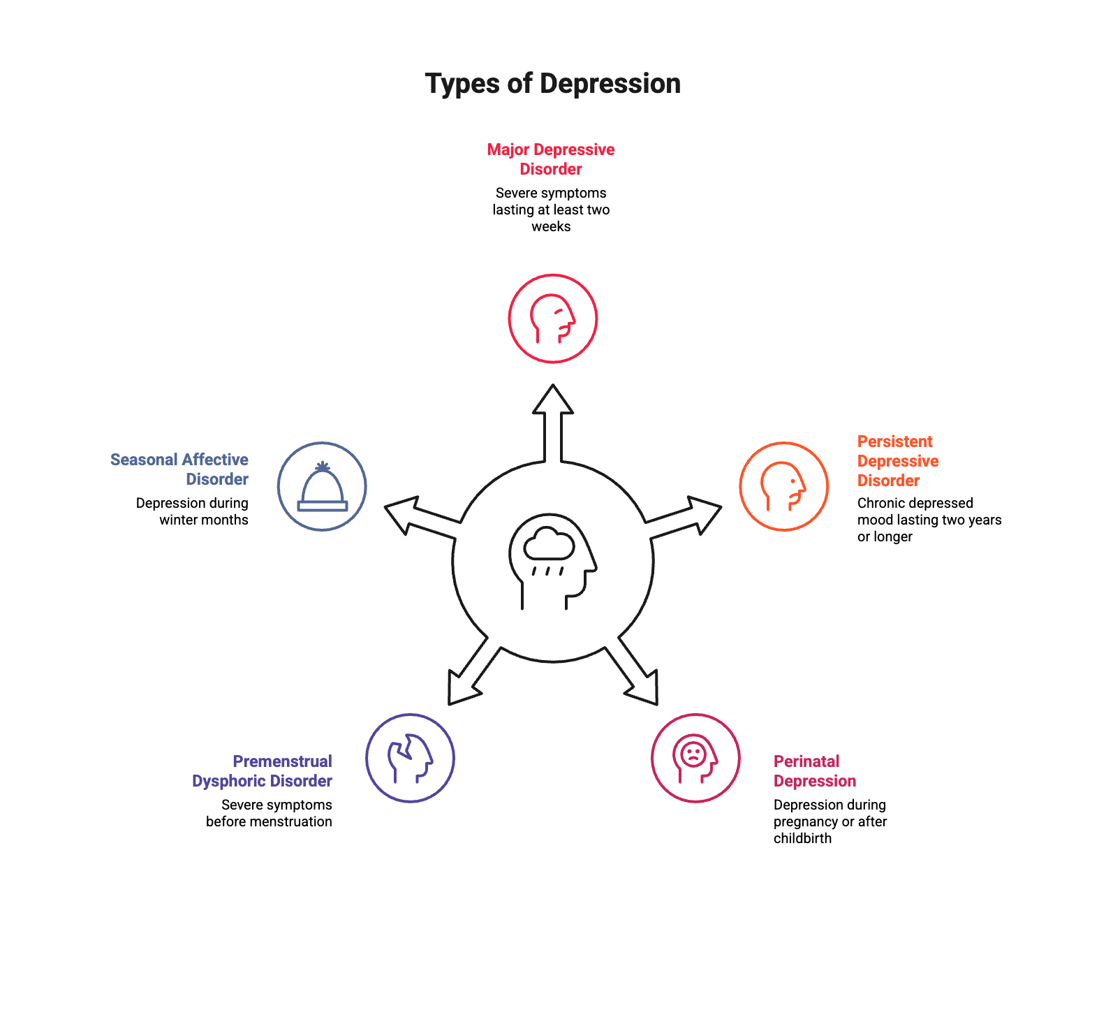 Understanding sadness and depression requires recognizing that depression encompasses several mood disorders. Each type shares core features but has unique characteristics affecting treatment approaches and mental health outcomes.