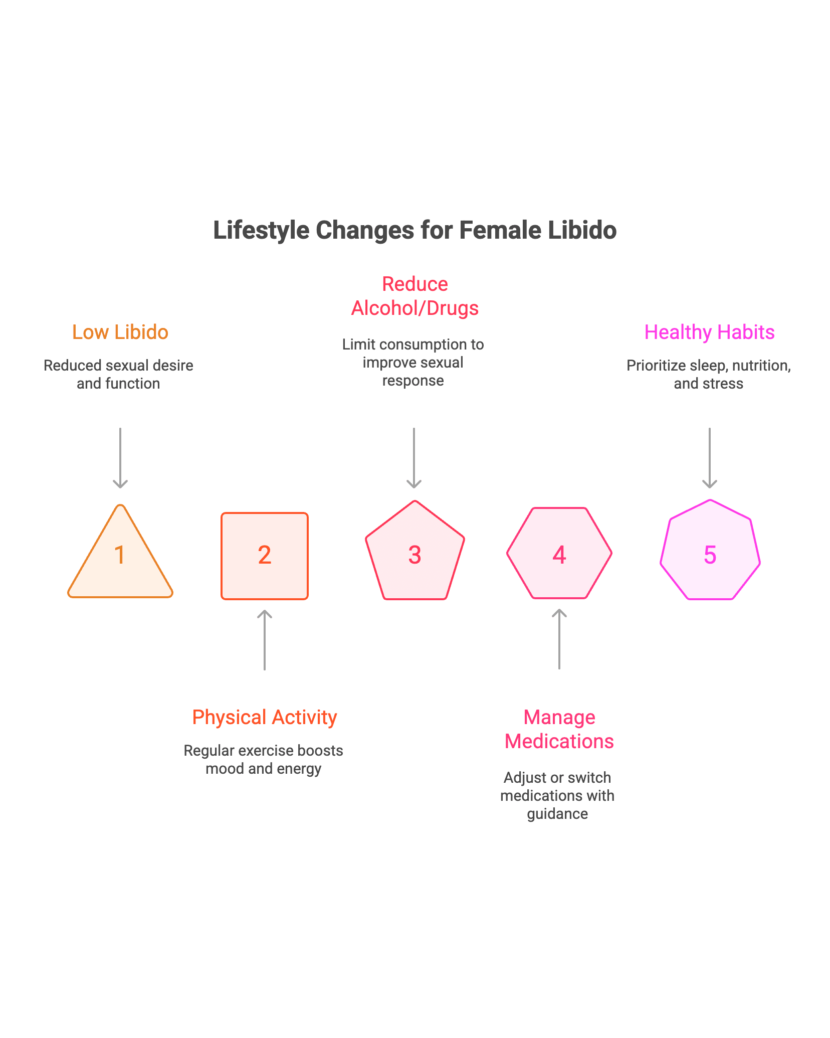 Beyond therapy, certain lifestyle changes can support improved sexual health. While there’s no magic pill for low libido, these modifications often make a meaningful difference when combined with psychological treatment.