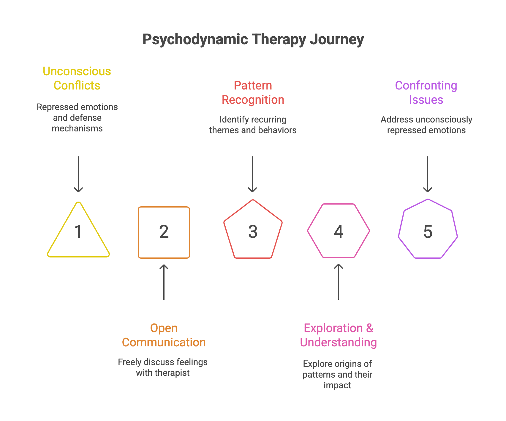 Sessions usually last 45-50 minutes, and treatment duration varies. Short-term psychodynamic psychotherapy might last 16-20 weeks, while longer-term treatment can continue for a year or more, depending on your goals and the complexity of issues being addressed. Psychodynamic therapy may take place over a longer time frame compared to other types of therapy, allowing for in-depth exploration.