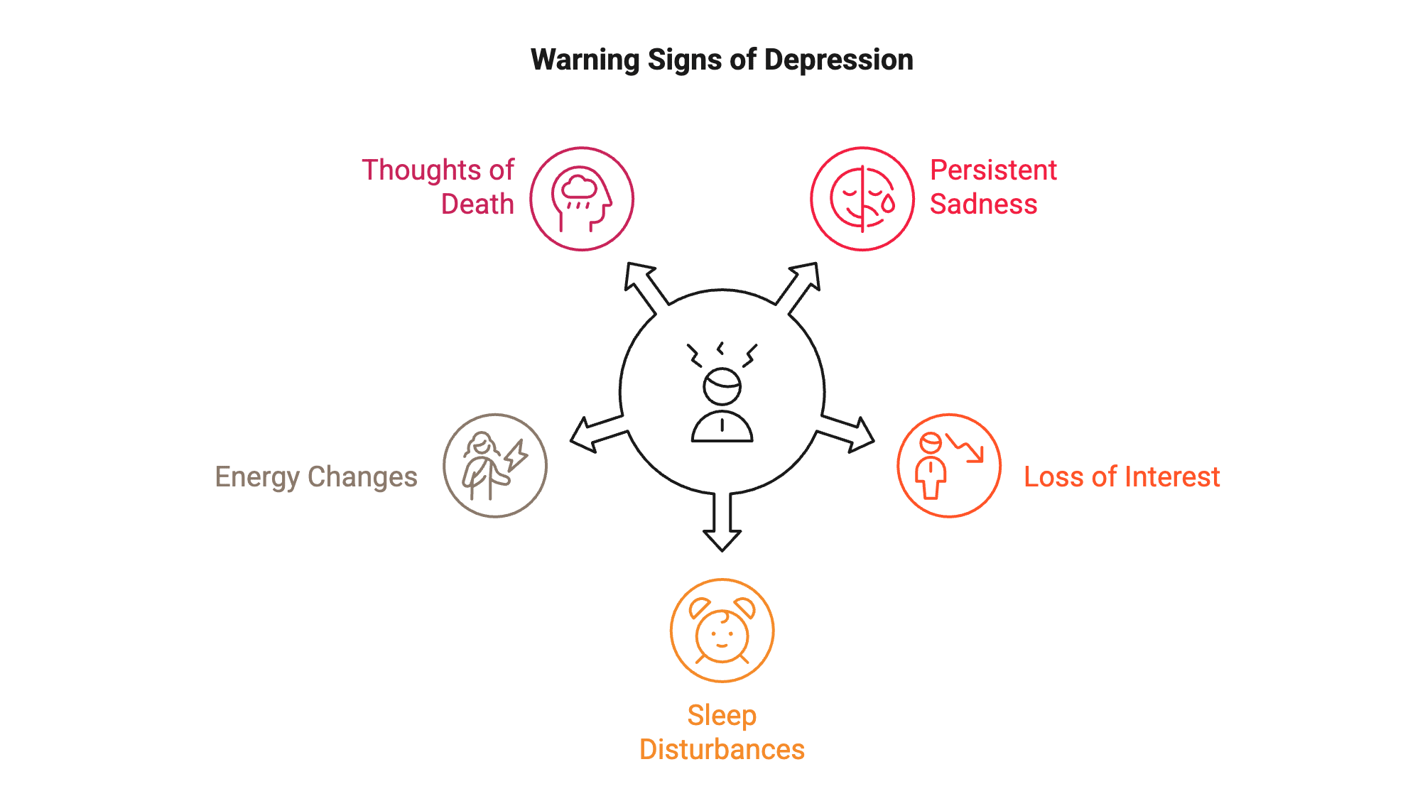 Doctors use the SIGECAPS framework (a memory tool) to assess depression symptoms: Sleep problems, Interest loss (little interest or pleasure in activities), Guilt or worthlessness, Energy depletion (feeling little energy or fatigue), Concentration difficulties, Appetite changes, Psychomotor changes, and Suicidal thoughts.