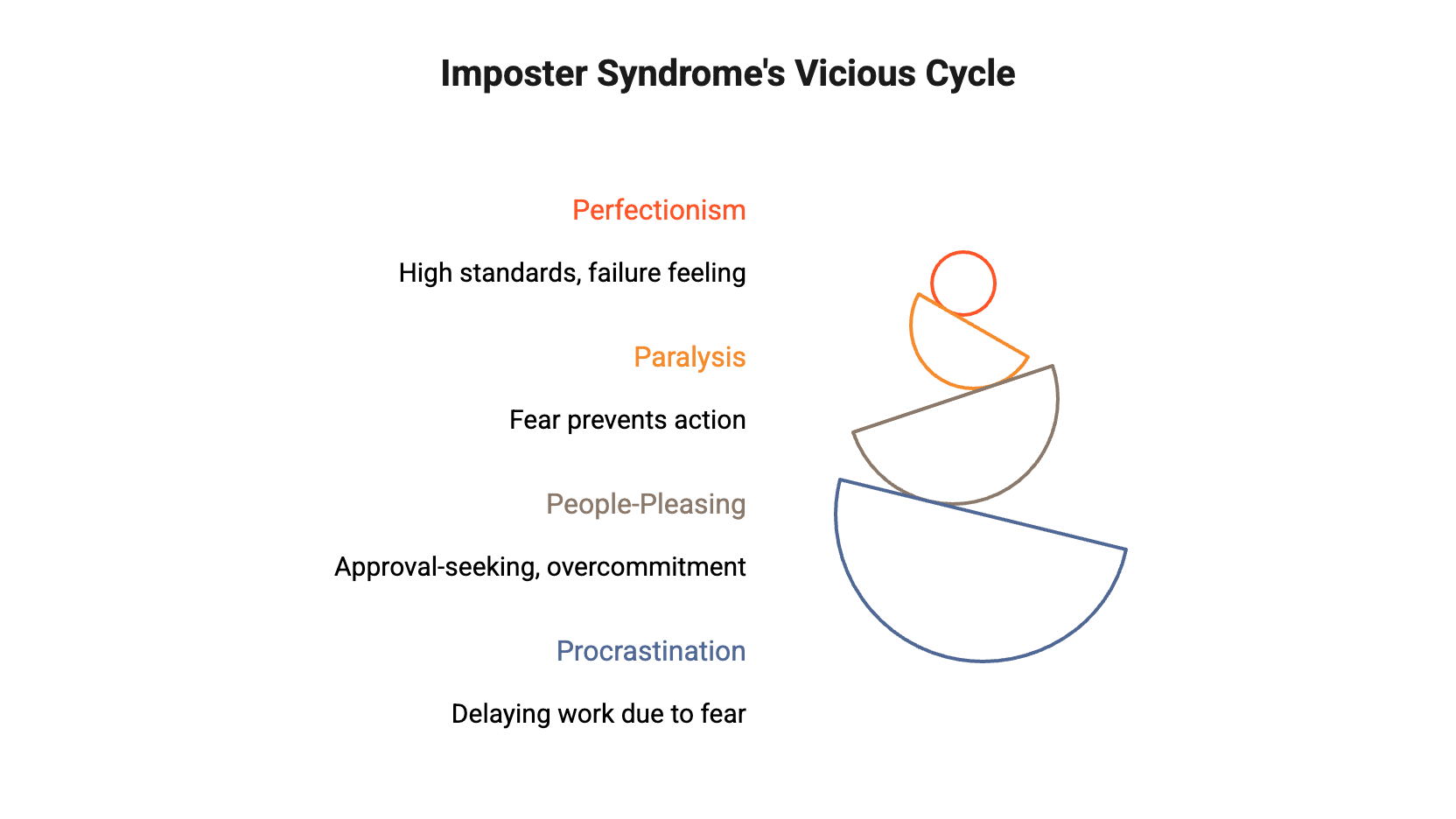 Procrastination can paradoxically result from imposter feelings and fear of failure—delaying work because of persistent fear that best efforts won’t be good enough. This creates a cycle affecting mental well-being and reinforcing self-doubt.