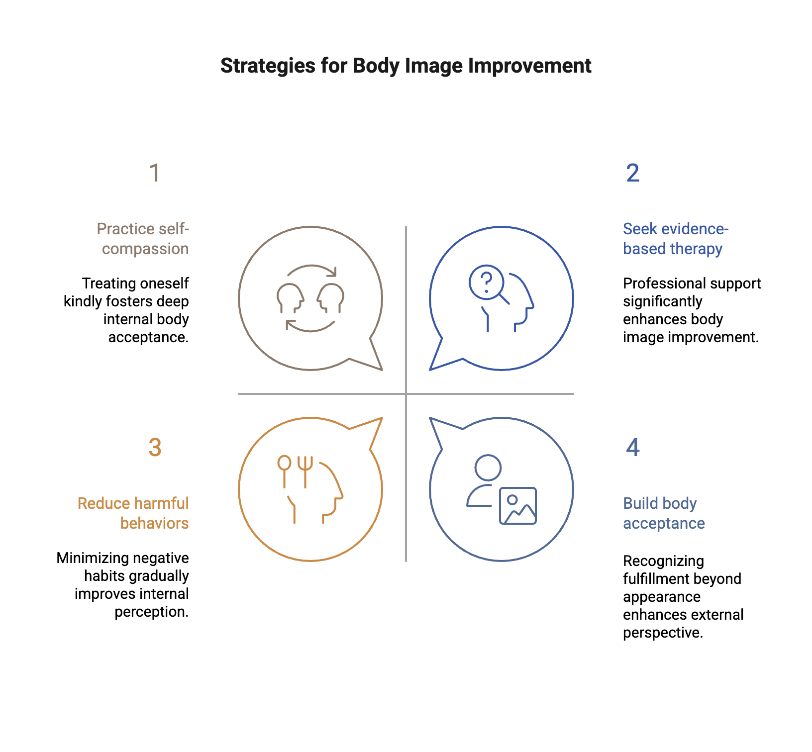 Research consistently shows that these strategies, particularly when combined with professional support, lead to meaningful improvements in body satisfaction and overall quality of life.