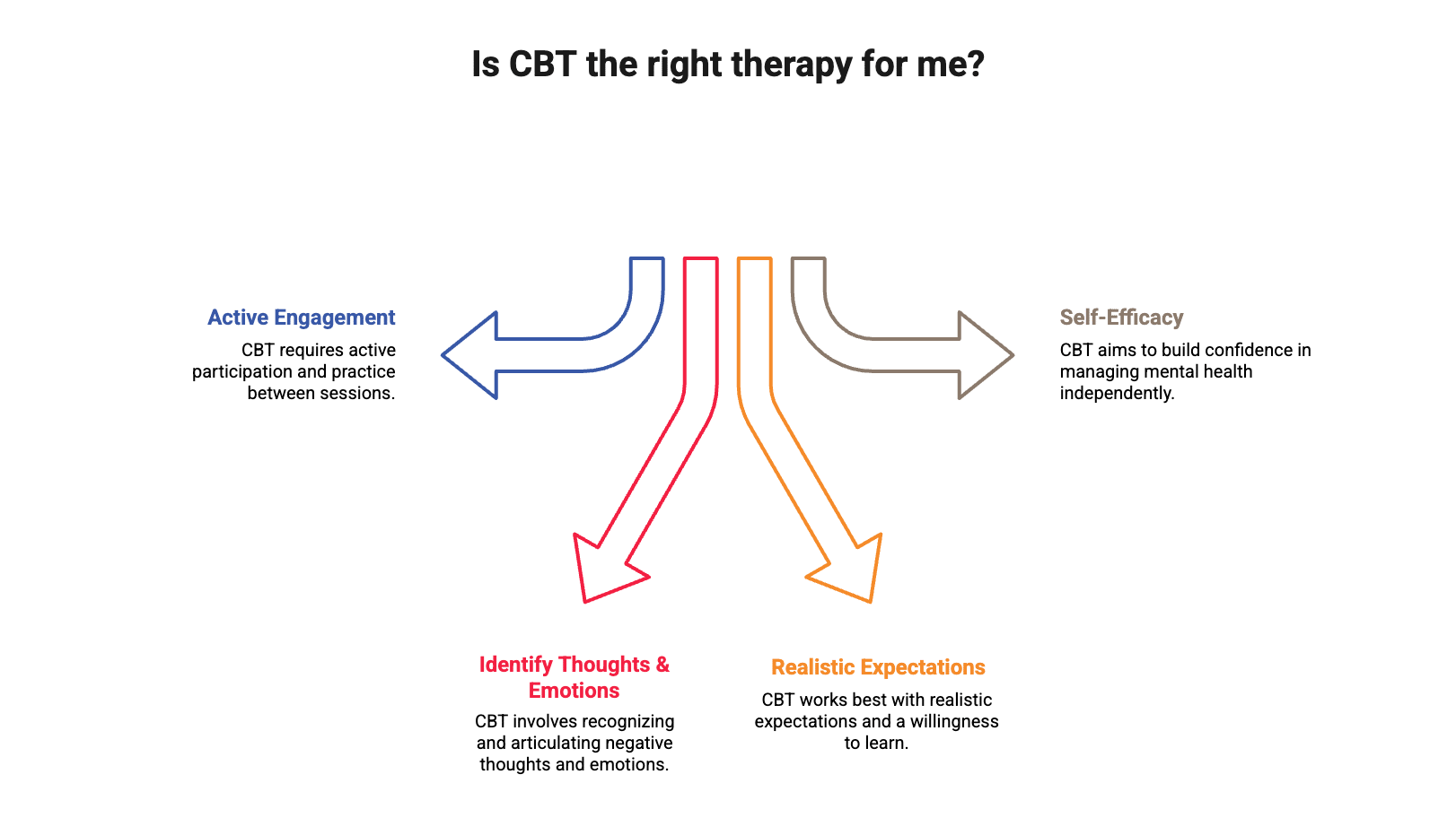 Cognitive behavioral therapy CBT tends to work best for people who are willing to actively engage in the therapeutic process, can identify and articulate negative thoughts, negative emotions, and feelings, and have the capacity to practice CBT interventions between therapy sessions. Strong evidence from meta analyses—comprehensive reviews of multiple studies—supports cognitive behavioral therapy CBT effectiveness for: