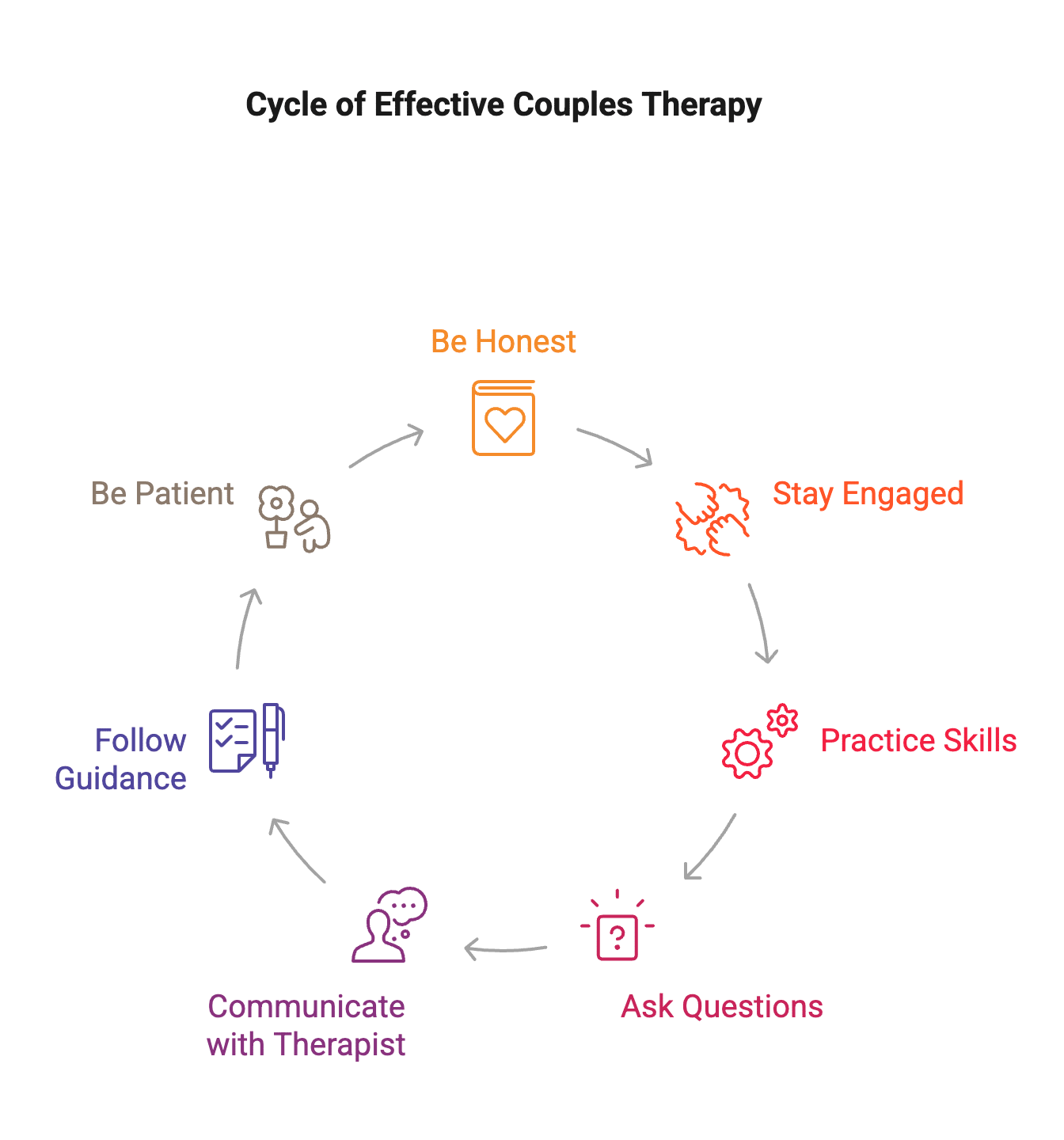 Therapists may assign take-home exercises to help couples apply new skills between sessions. Committing to following the therapist’s guidance outside of sessions is very important.