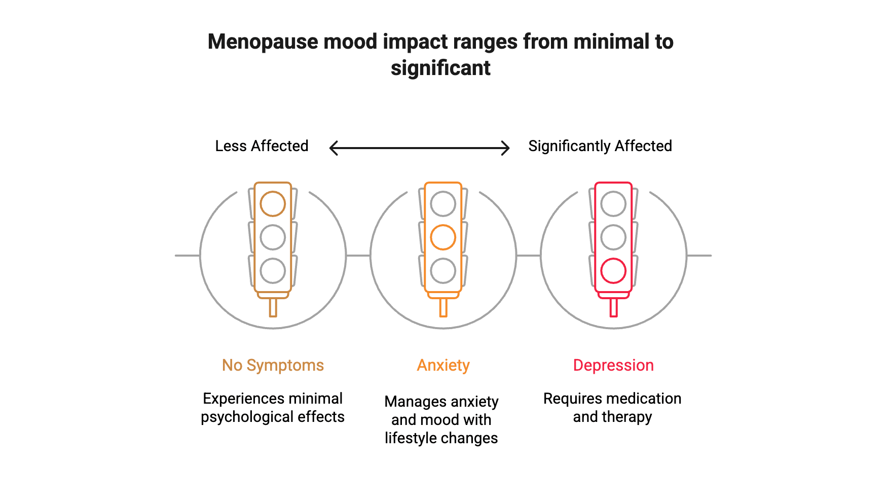 The connection between menopause and mood is complex. Not all women experience psychological symptoms during menopause. You are not universally at risk for anxiety or depression just because you’re going through this transition.