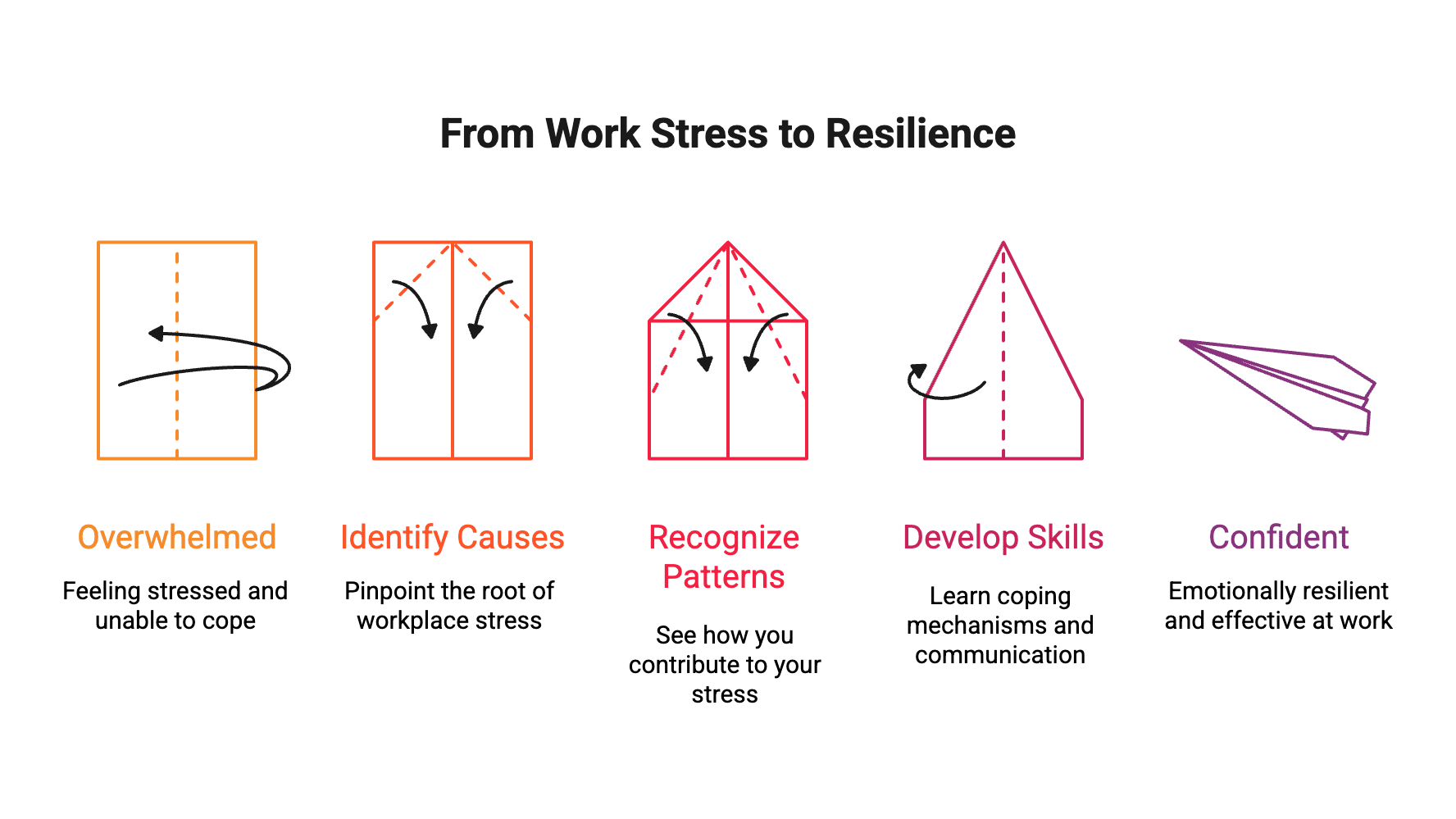 Recognizing the signs of work-related stress is the first step toward getting help. Workplace stress often shows up in multiple ways—affecting your body, emotions, thoughts, and relationships. Here are five key signs to watch for: